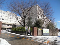 鶴間キャンパスの校門が見えてきます。校門をくぐって校内に入ります。