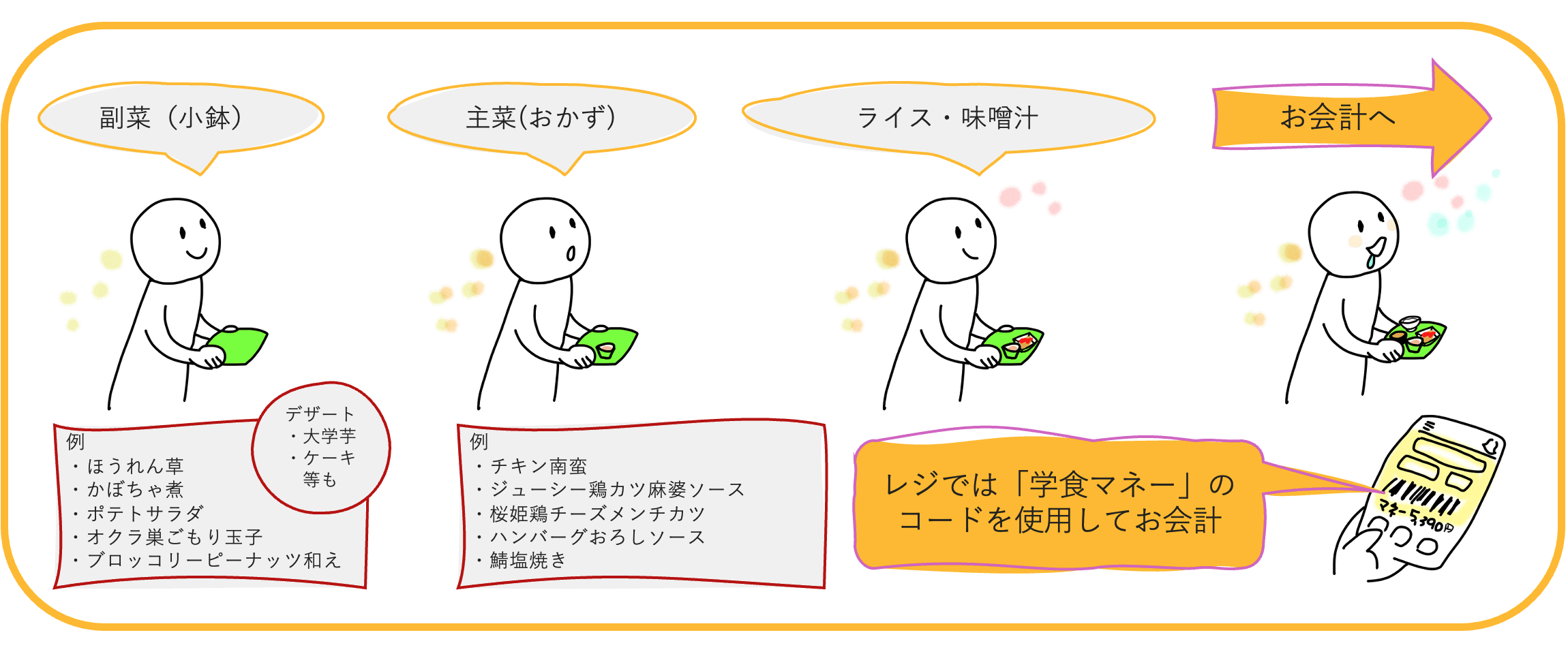 ★レジ1は「現金・生協ベースマネー・学食マネー」でお会計できます。