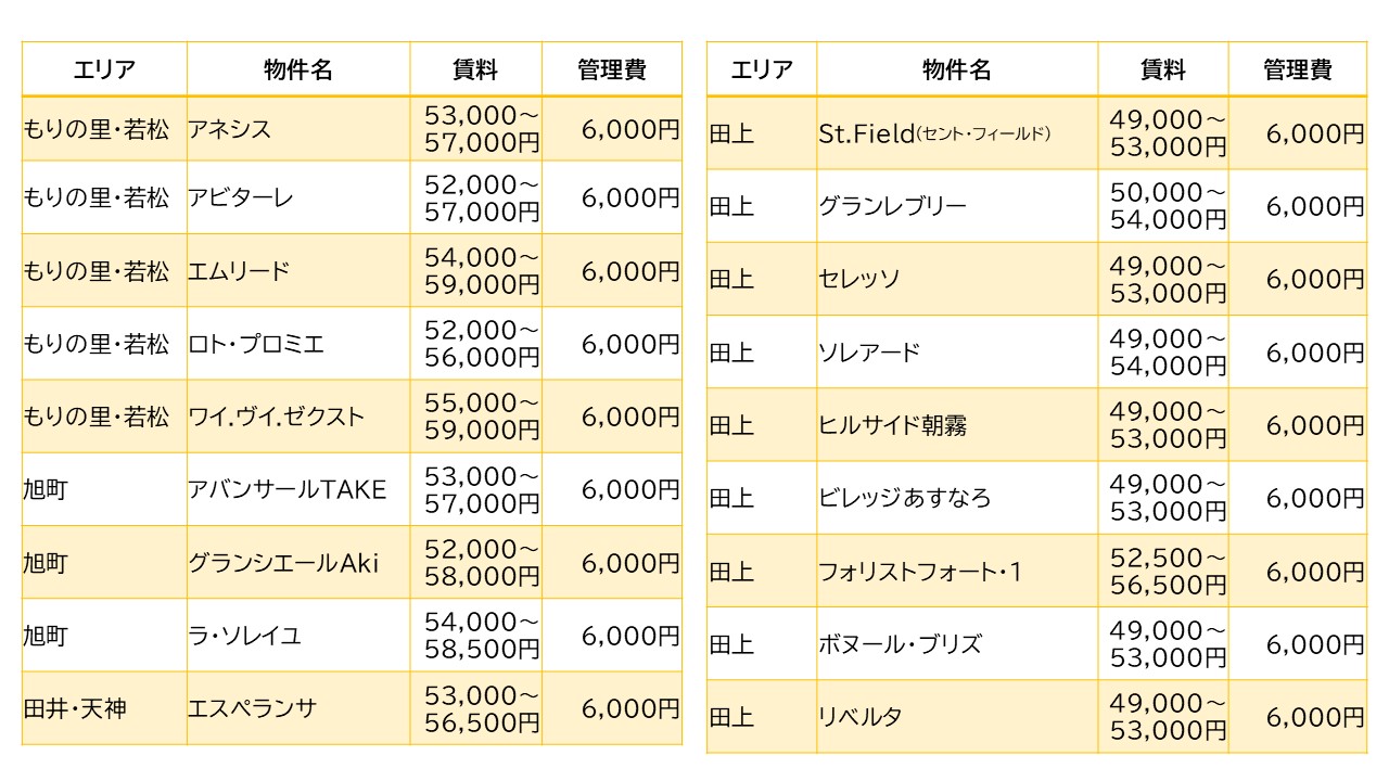 受付対象物件の一覧は下記「対象物件一覧表」の通りです。