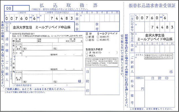 - 加入者名【金沢大学生協 ミールプリペイド申込係】
